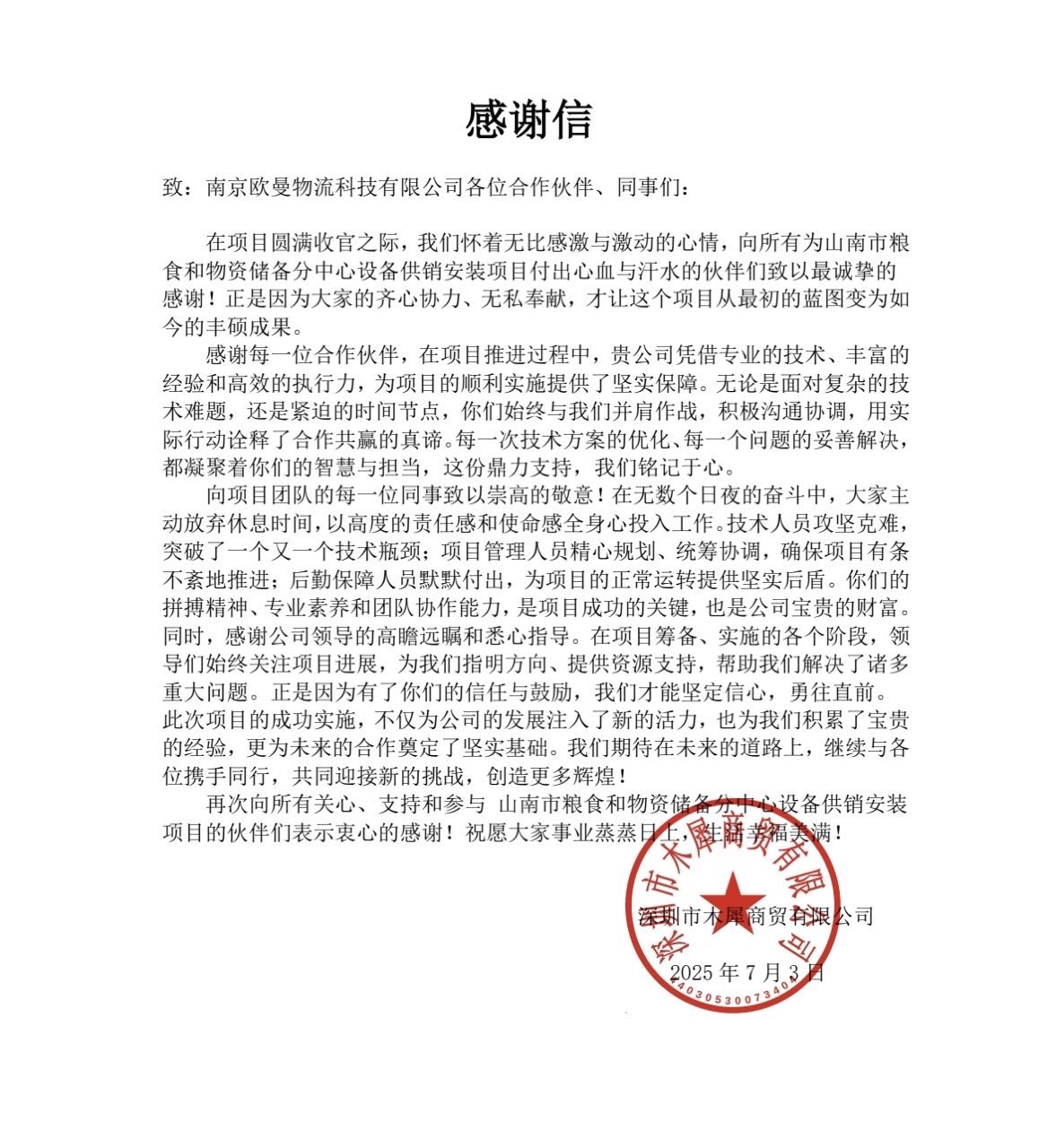 至今,南京歐曼物流科技有限公司已與國內(nèi)包括江蘇、北京、上海、廣東、福建、云南、四川、浙江、湖南、甘肅、黑龍江等超過30個(gè)省市,以及東南亞、中東、澳洲、非洲及南美洲等國外地區(qū)的眾多國家企事業(yè)單位達(dá)成合作。